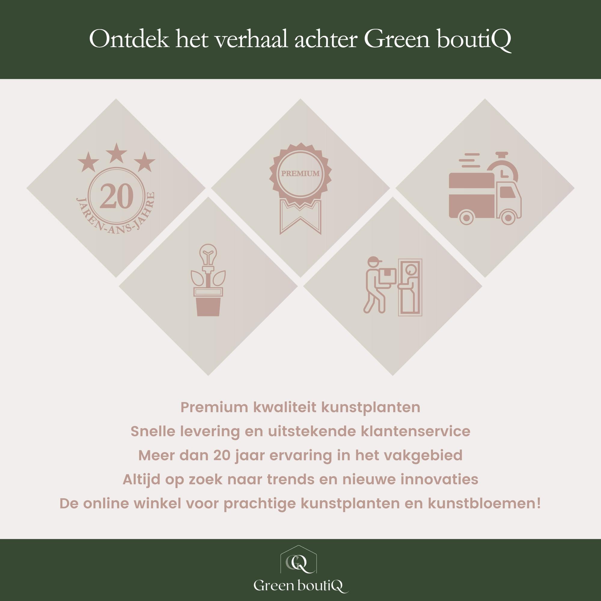 Elke plant en bloem wordt met zorg verpakt en gecontroleerd op versheid en gezondheid voordat deze wordt verzonden. Dankzij onze premium kwaliteitseisen ontvangt u altijd een product dat voldoet aan de hoogste standaarden van JIHANEgreen.