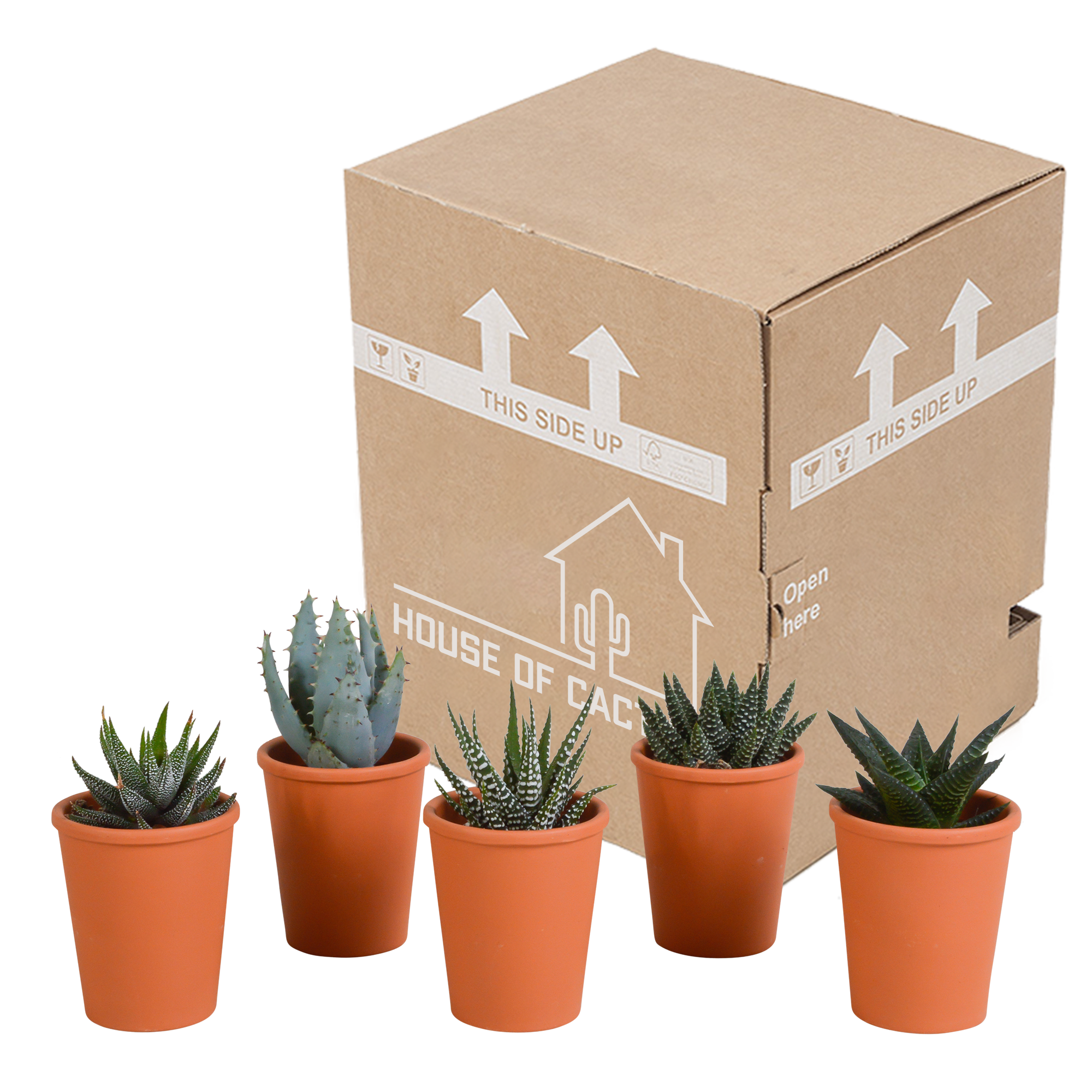 Gasteria/Haworthia Mix 5,5 cm - Vijf Groene Juweeltjes in Terracotta