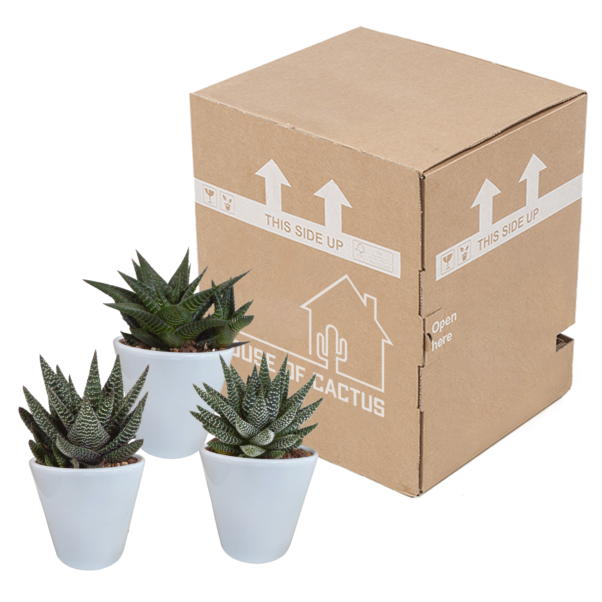 Gasteria/Haworthia mix 8,5cm - 3x - in witte pot